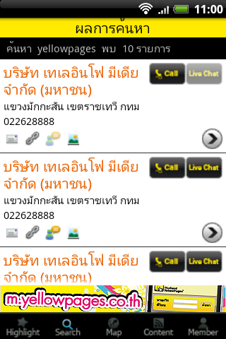 YellowPages Live Application By Teleinfo Media Public Company Limited.