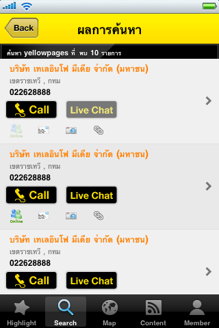 YellowPages Live Application By Teleinfo Media Public Company Limited.
